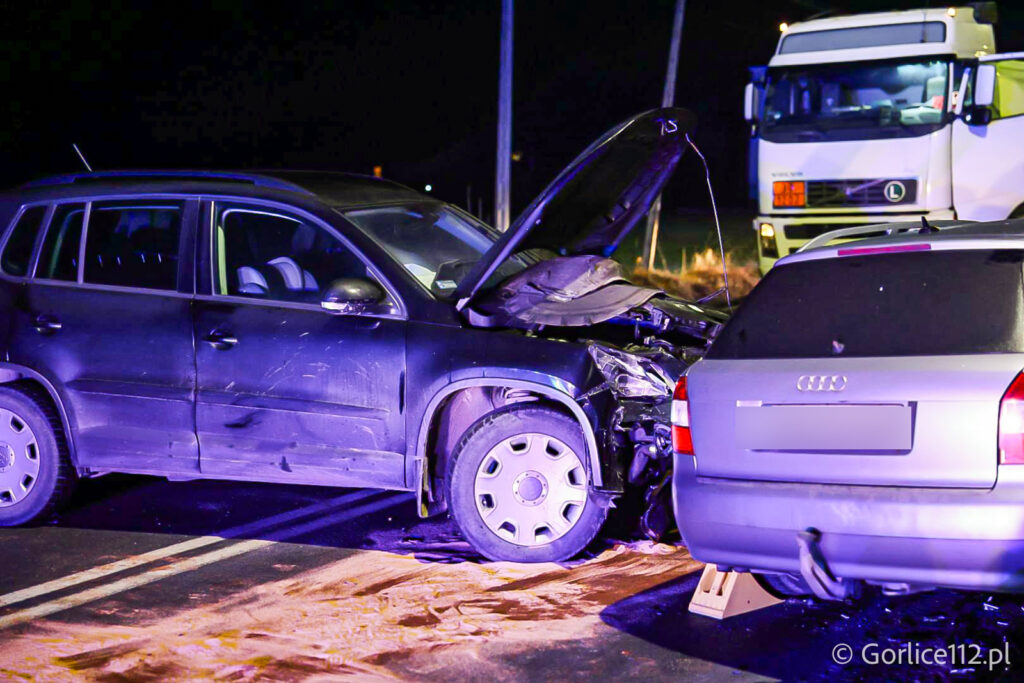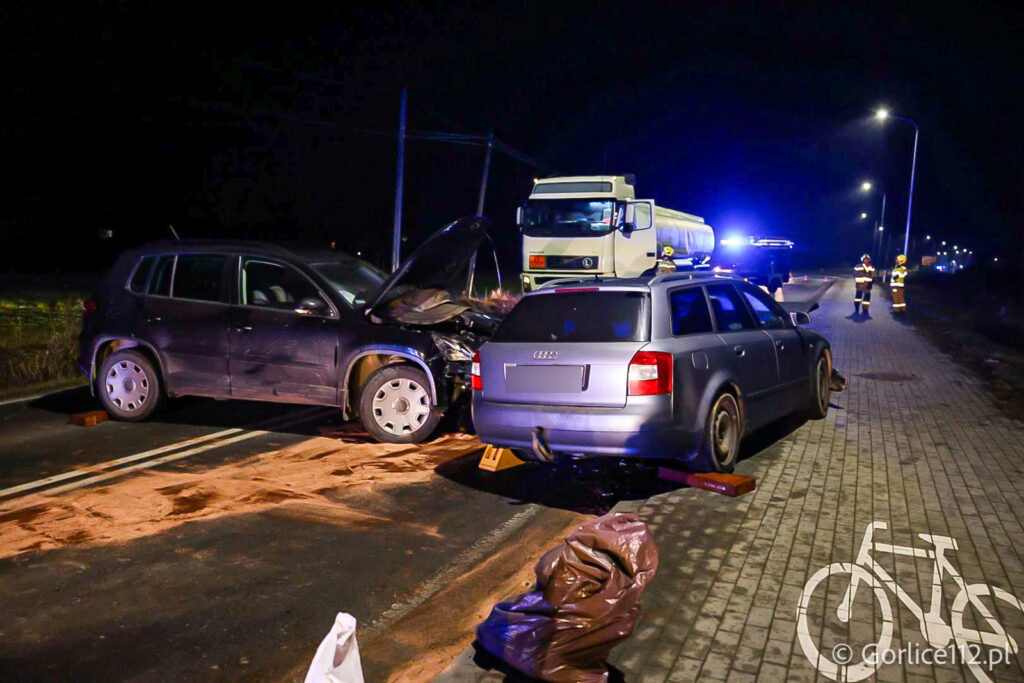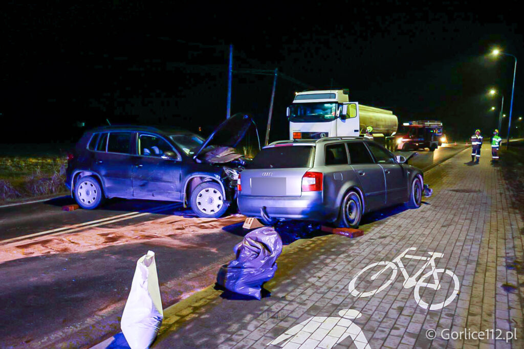 Do wypadku doszło na prostym odcinku, a w zdarzeniu wzięli udział kierowcy samochodów osobowych marki Audi i Volkswagen. Dwie osoby zostały poszkodowane – zespół ratownictwa medycznego zabrał je do szpitala. Pojazdami podróżowali wyłącznie kierujący.