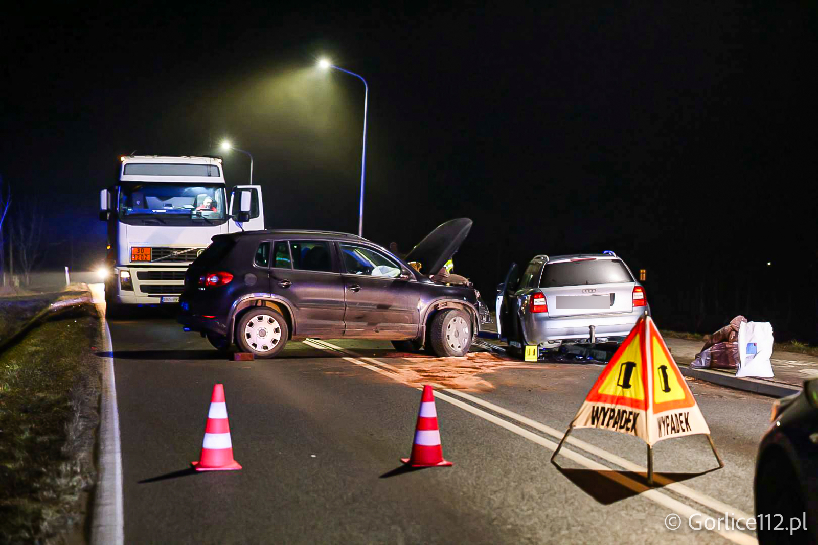 Do wypadku doszło na prostym odcinku, a w zdarzeniu wzięli udział kierowcy samochodów osobowych marki Audi i Volkswagen. Dwie osoby zostały poszkodowane – zespół ratownictwa medycznego zabrał je do szpitala. Pojazdami podróżowali wyłącznie kierujący.