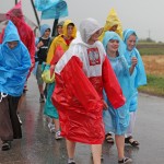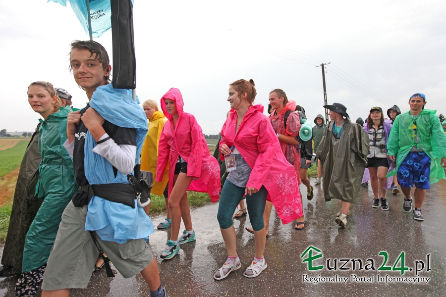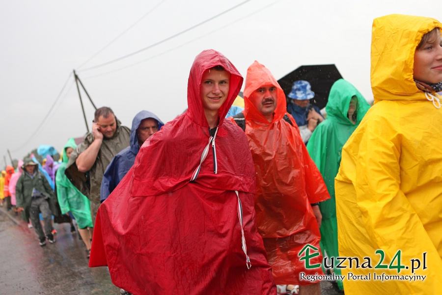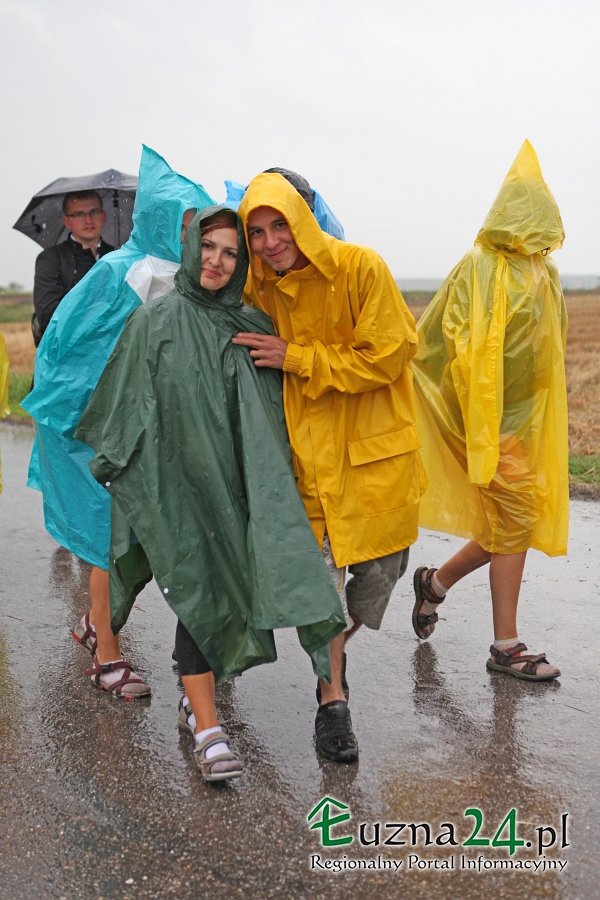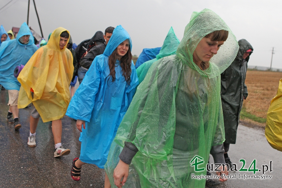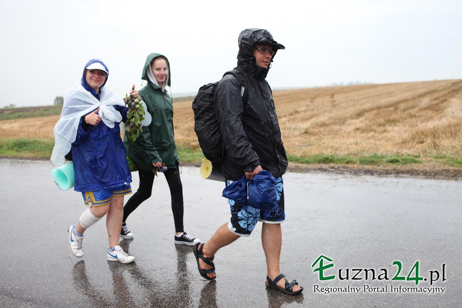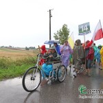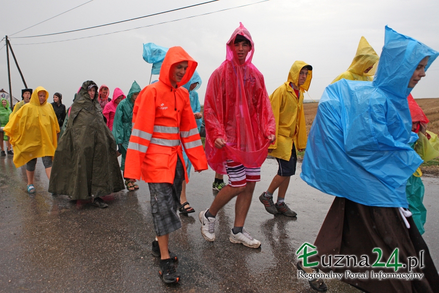 Wczorajszy dzień nie należał do najlepszych na pątniczym szlaku XXXII PPT na Jasną Górę. Po Mszy Świętej zaczął padać deszcz, przez co pielgrzymi musieli ubrać płaszcze przeciwdeszczowe lub szukać innych możliwości schronienia jak parasole czy kawałki foli. Utrudnieniem dodatkowym było błoto spływające z pól i zalegające na asfalcie.