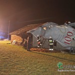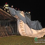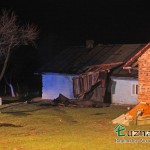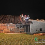 „Do akcji zostały zadysponowane dwa zastępy z JRG w Gorlicach, OSP Mszanka oraz pogotowie energetyczne – skomentował Dariusz Surmacz rzecznik PSP w Gorlicach. Z informacji nam przekazanych przyczyną zdarzenia był silny wiatr. Dowódca po przybyciu na miejsce zastał uszkodzony, murowany budynek gospodarczy. Silny podmuch wiatru spowodował uszkodzenie ścian w tym ściany szczytowej na długości ośmiu metrów i kolankowej na długości 6 metrów a także uszkodzenie blaszanego pokrycia dachowego około 50 metrów kwadratowych wraz z drewnianą konstrukcją. Podmuch wiatru przeniósł oderwane fragmenty dachu na odległość 15 metrów powodując tym samym uszkodzenie napowietrznego przyłącza energetycznego na pobliskim budynku mieszkalnym. Działania polegały na zabezpieczeniu budynku mieszkalnego, gospodarczego oraz terenu wokół uszkodzonego przyłącza energetycznego. Odcięto przyłącz od budynku mieszkalnego, wykręcono bezpieczniki topikowe. Po wykonaniu rozpoznania podjęto działania polegające na rozbiorze ścian do poziomu stropu ścian szczytowej oraz kolankowej oraz uszkodzonego pokrycia dachu. Miejsce prowadzonych działań oświetlono za pomocą sprzętu oświetleniowego, po wykonaniu prac demontażowych dokonano doraźnego zabezpieczenia budynku przy pomocy plandeki. Dodatkowo zabezpieczono inne elementy, które mogłyby ulec przemieszczeniu. Działania trwały dwie godziny trzynaście minut. Straty materialne oszacowano w wysokości 10 tyś złotych.”