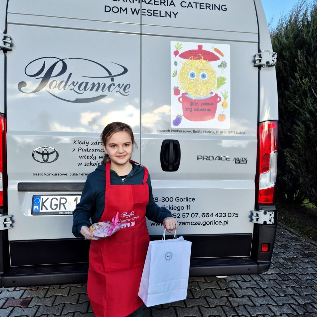 Czy można połączyć miłość do jedzenia z miłością do sztuki? Jak najbardziej. Cukiernia Podzamcze zorganizowała konkurs plastyczny pod hasłem „Smaczne Podzamcze: jedz zdrowo, rysuj kolorowo”. Wzięli w nim udział uczniowie z Zespołu Szkolno-Przedszkolnego nr 1 w Łużnej i Miejskiego Zespołu Szkół nr 5 im. ks. Jana Twardowskiego w Gorlicach. Od tej pory prace zwycięzców towarzyszą cukierni – widnieją na samochodzie, którym pracownicy dostarczają posiłki do szkół!